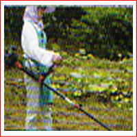 ・刈払い機に取り付けて使用すると、肩当てバンド部分と先端の特殊ゴム部分がエンジンの振動を吸収し、ゴムの伸縮作用で刃先が左右に大きく軽く振れますので作業能率が上がります