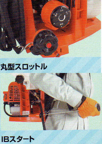 ●背負ったままエンジン始動ができるiBスタート付で従来機の約1/3の力でエンジン始動できます
