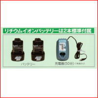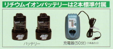 0.8 圧力 MPa 0.3(3.0kgf/cm2) 運転時間(2本連続使用)min 90(2頭口) 120(除草ノズル) 充電時間 min 50(1本あたり) 電池種類(2本標準付属) BL1013(10.8V1.3Ah) 標準付属ノズル 2頭口、除草ノズル