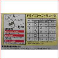 ドライブシャフト形状は写真の一覧表をご覧ください