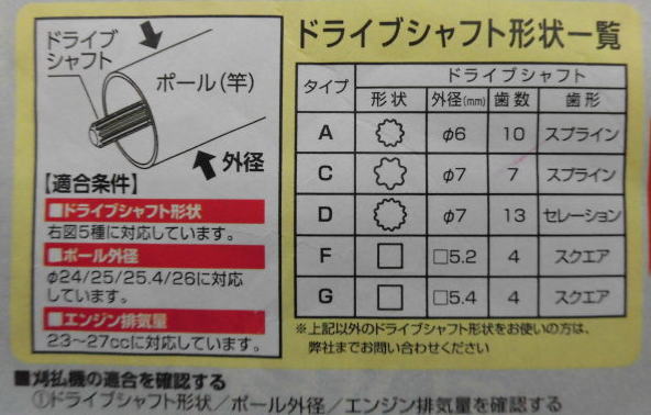 ◆取付条件 エンジン排気量 23〜27cc ポール外径 φ24/25/25.4/26 mm