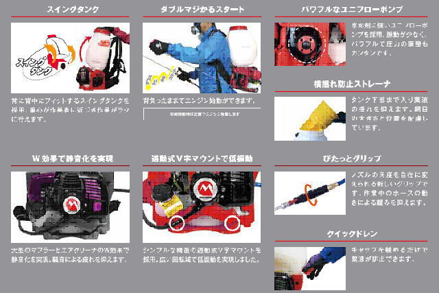 ★スイングタンク・・・常に作業者の背中にフィットするため、作業が楽になります。