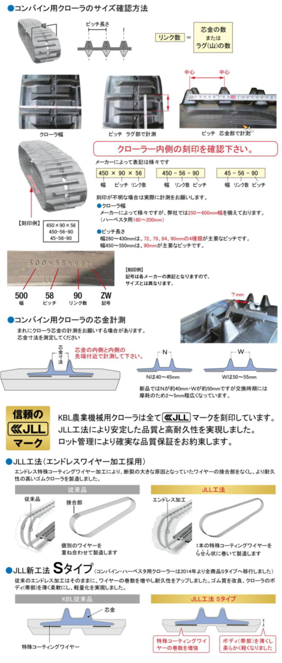 ●トラブル防止の為、サイズ(幅・ピッチ・リンク)、クローラ内側の刻印を確認してからご注文お願いします。